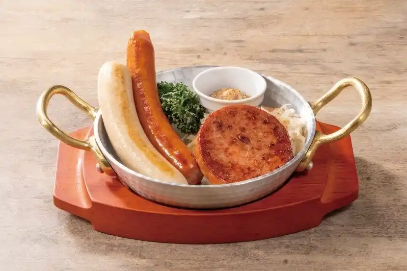 ビヤホールの定番メニューであるソーセージの3種盛合せ(あらびきフランク・バイスヴルスト・レバーケーゼ)を限定価格920円(税込)で販売いたします。 |