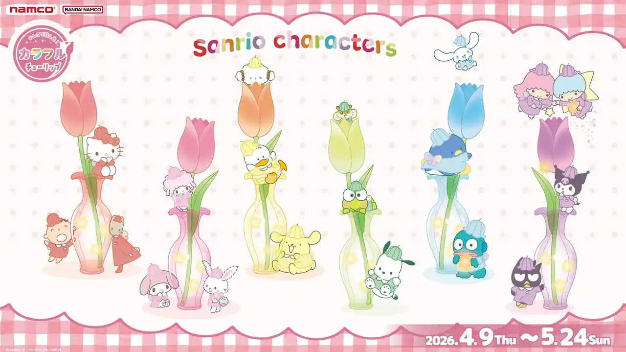 | 株式会社バンダイナムコエクスペリエンスは、株式会社サンリオが開催する年に一度の人気投票イベント「2026年サンリオキャラクター大賞」と連動したキャンペーン『ナムコで推し色!~カラフルチューリップ~』を、2026年4月9日(木)から5月24日(日)まで、全国のアミューズメント施設「ナムコ」および「ナムコオンラインクレーン」(以下ナムクレ)で開催します。 | ||||||||||||||