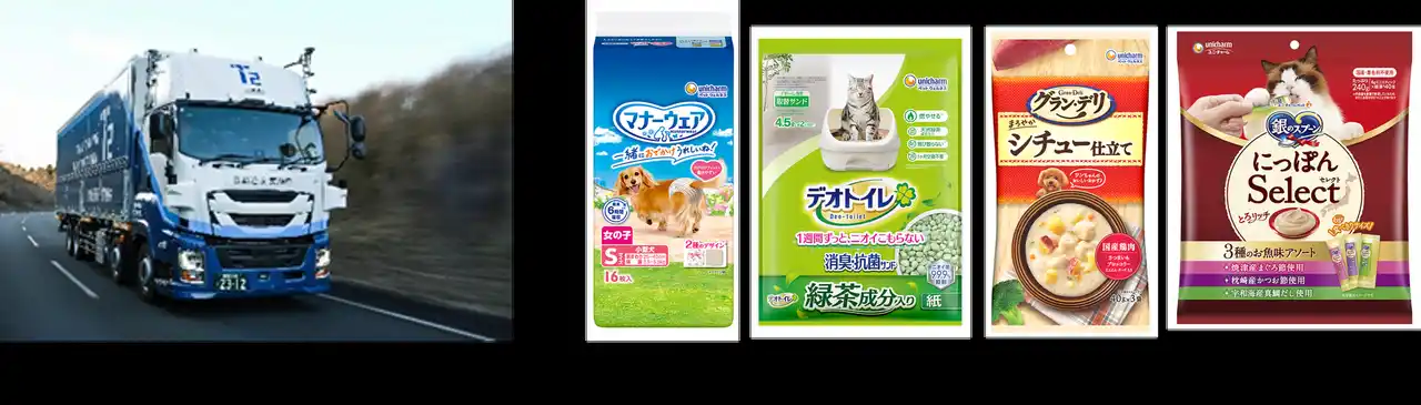 【ユニ・チャーム株式会社】 ユニ・チャームとキユーソー流通システム、T2の3社 自動運転トラックによるペット商品の幹線輸送実証を開始 ~ペットとの共生社会を支える次世代物流プロジェクト~