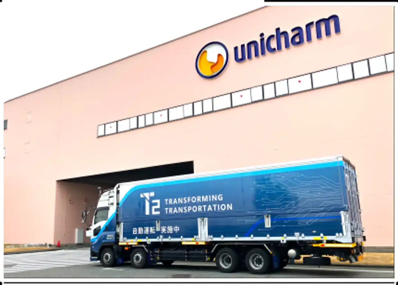 | 物流業界は現在、ドライバー不足や輸送費の上昇、環境負荷低減への対応など、複合的な課題に直面しています。ユニ・チャームおよびKRSは、本実証の結果を踏まえ、T2が展開するレベル2自動運転トラックの商用運行※、さらには2027年度に予定されているレベル4自動運転トラックによる幹線輸送サービスへの参画を本格的に検討してまいります。 | |||