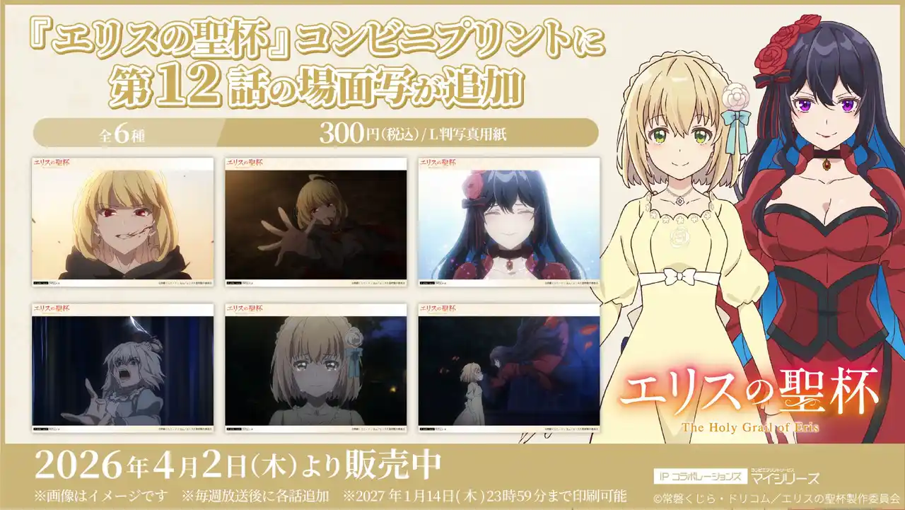 | 全国の対象コンビニで利用可能なプリントサービスとして提供中のTVアニメ『エリスの聖杯』コンビニプリントの「場面写」に第12話を追加しました。 | |||||||||