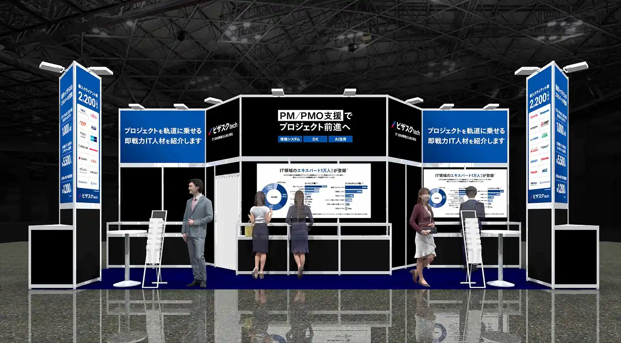 | 「ビザスクtech」は、DX推進やシステム開発における「即戦力IT人材の不足」を、現役のPM/PMO等とのマッチングで解決するサービスです。ブースでは、貴社のプロジェクト課題に合わせた最適な活用方法をその場でご相談いただけます。 | |||