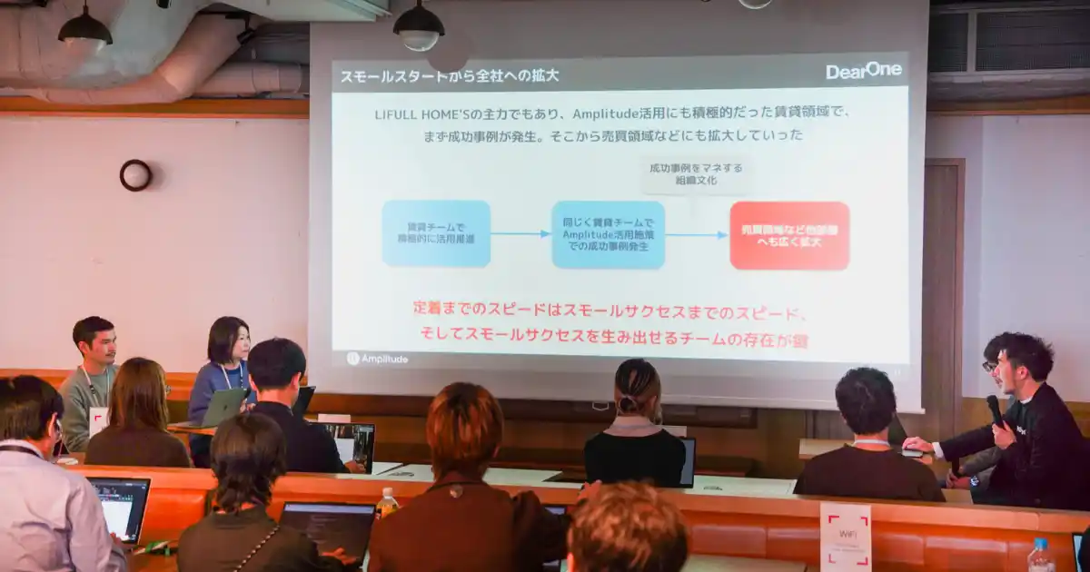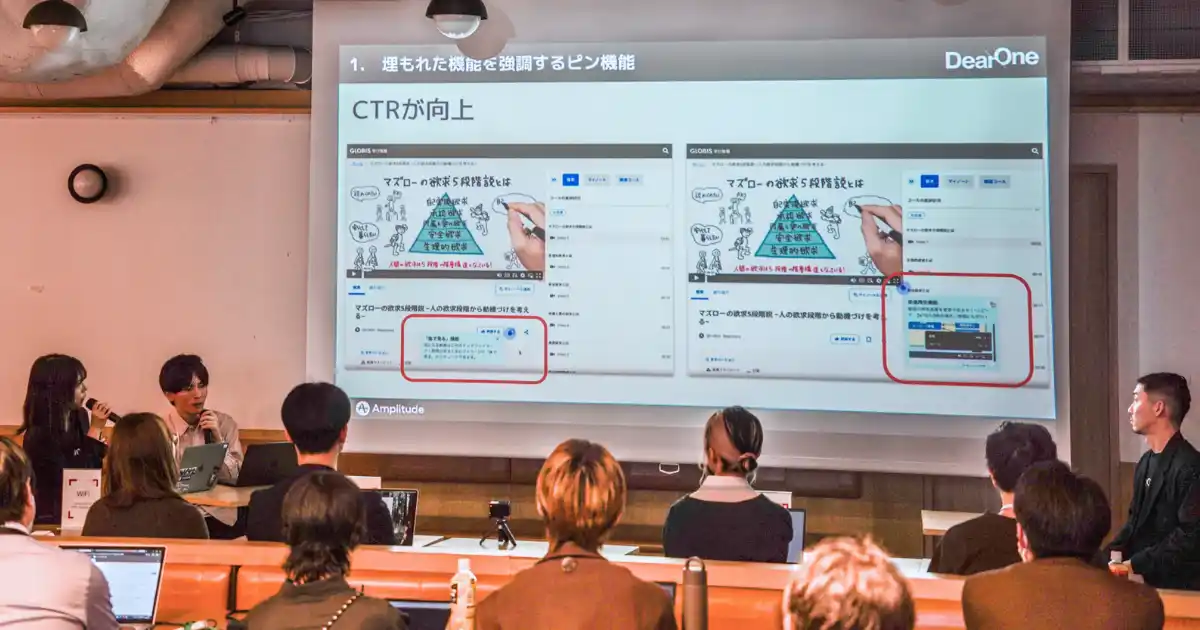 今回のイベントは、DearOneとAmplitudeが共催し、プロダクトグロースの「型」と「知見」をシェアしながら、学びや気づきを得られることを目的に開催しました。当日は、プロダクトマネージャーやマーケターなど多数の方々にご参加いただき、参加者同士の交流を深める場となりました。 |