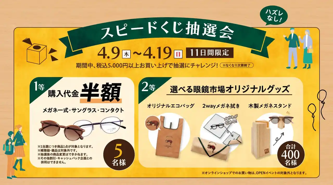 ※ オリジナルエコバッグ、2wayメガネ拭き、木製メガネスタンドの中からお選びいただけます |