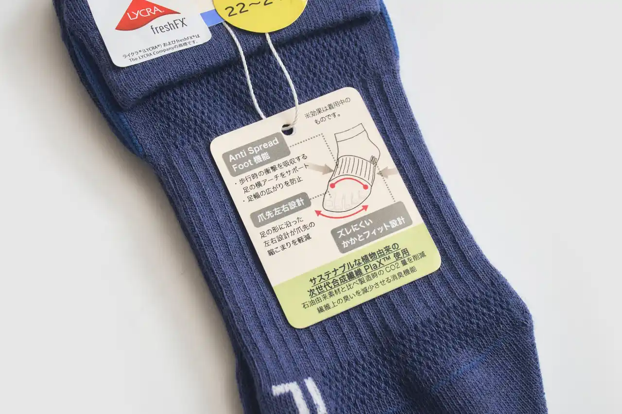 靴下には耐久性や伸縮性を確保するため、ポリエステルやナイロンなど石油由来の合成繊維が多く使用されています。これらの素材は化石資源を原料としていることから、製造や廃棄の過程で温室効果ガスの排出につながるなど、環境負荷の観点から課題が指摘されています。 |