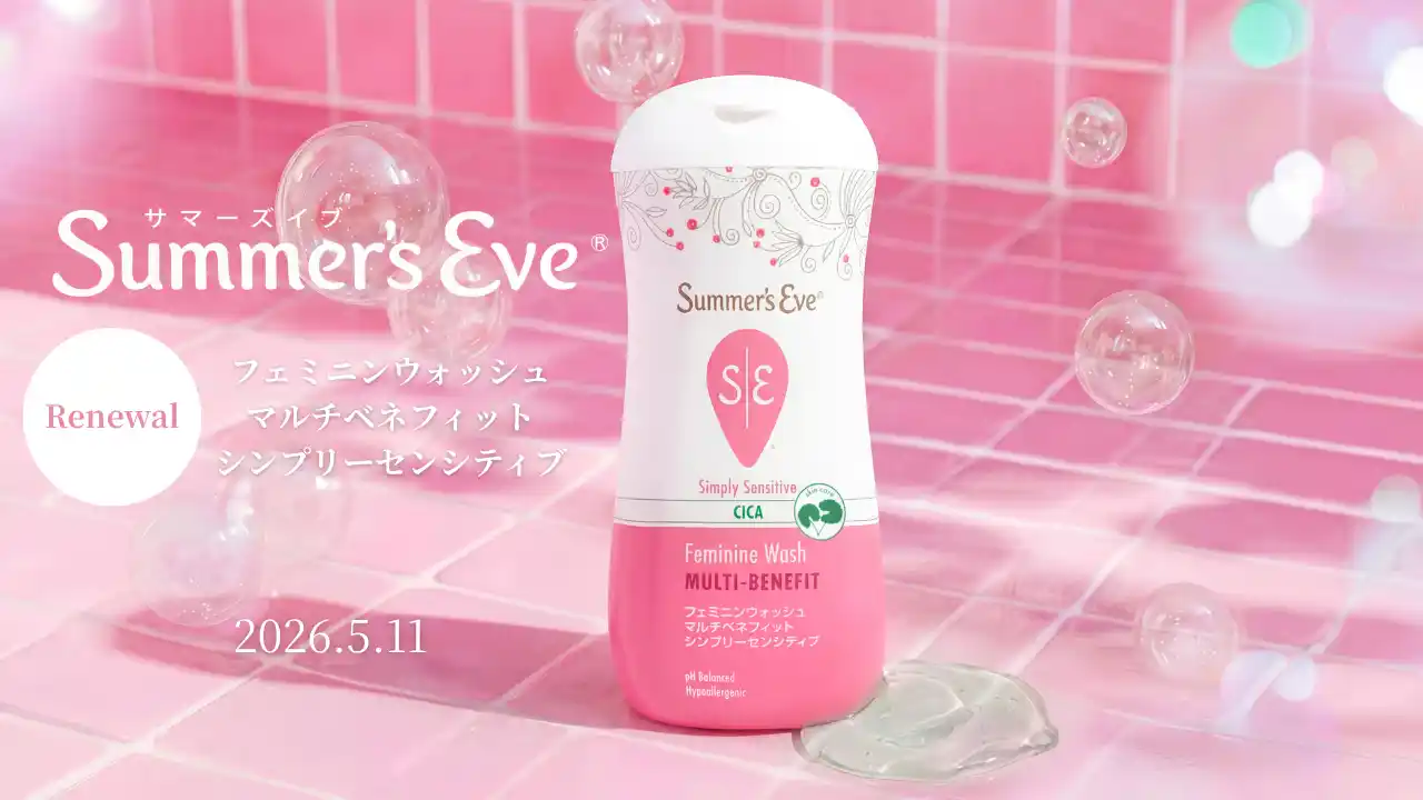 ピルボックスジャパン株式会社(本社:東京都港区北青山、代表取締役社長:稲積 憲)は、デリケートゾーンケアブランド「Summer’s Eve(サマーズイブ)」から、敏感肌向けのフェミニンウォッシュ「サマーズイブ フェミニンウォッシュ マルチベネフィット シンプリーセンシティブ<ピュアソープの香り>」を、人気の美容成分CICA(ツボクサエキス)配合のリニューアル版として、2026年5月11日より新発売することをお知らせいたします。 |