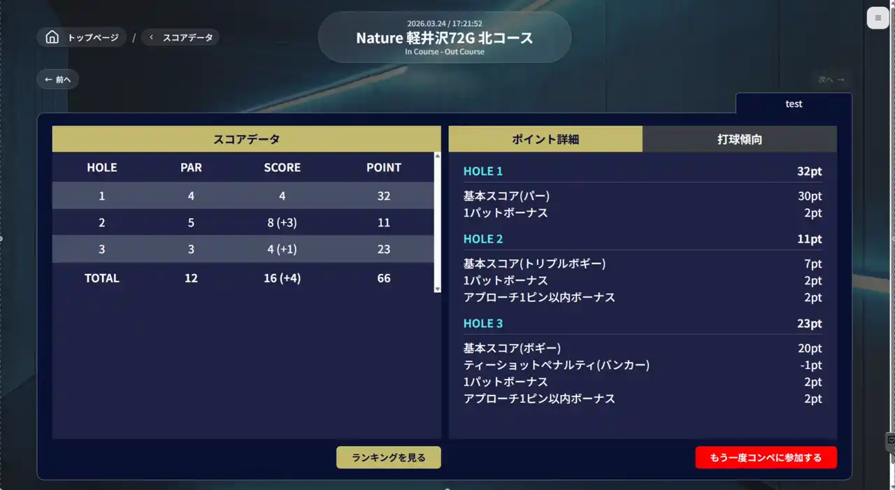 2.インドアの成果を実際の同じコースで発揮。「5周年記念リアルコンペ」