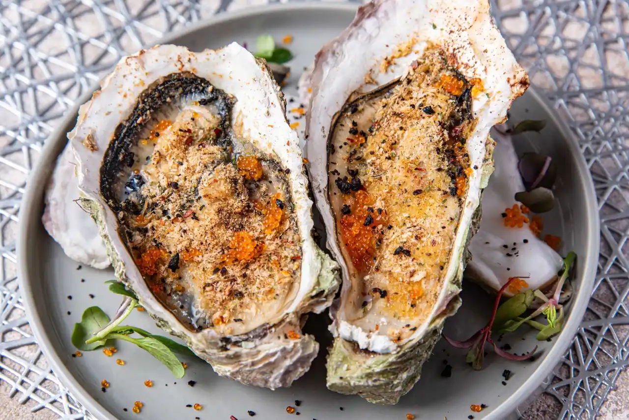 芳醇なハーブとカリカリのパン粉とともに、絶妙な火加減で香ばしく焼き上げた牡蠣です。 |