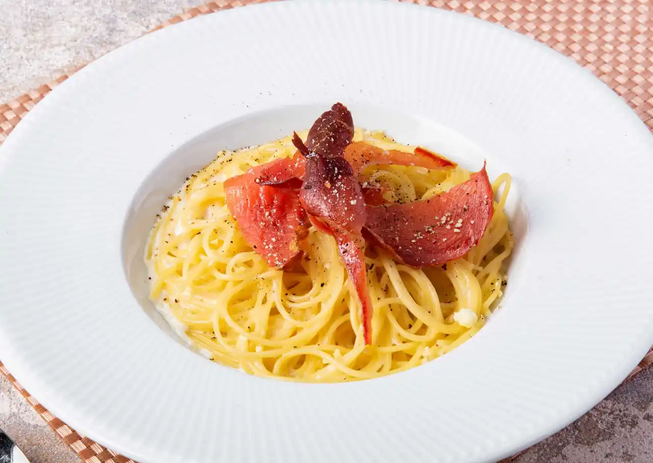 お客様の目の前でチーズを削りながらパスタを絡め、出来立てならではの香りとコクを楽しめるライブ演出です。 |