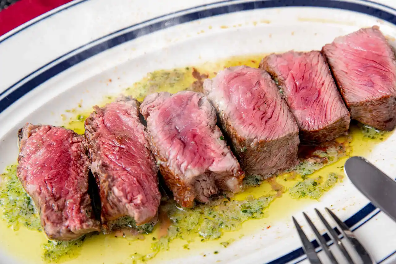 熱々の皿でテーブルへお持ちし、お客様の目の前でハーブバターを溶かしながらスタッフが丁寧にカットします。立ち上る香りとともに仕上がる様子をご覧いただける、ライブ感のある一皿です。 |