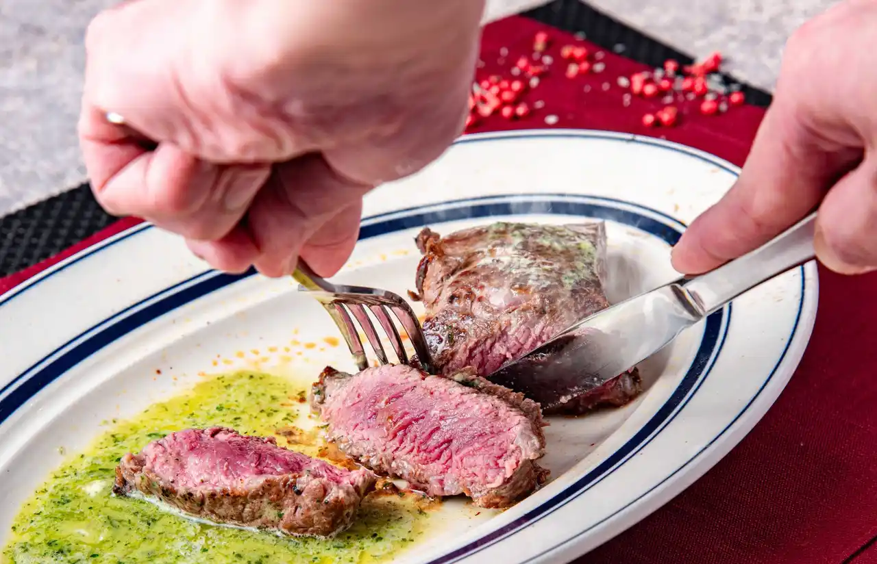・和牛ランプのグリル(お客様の目の前でのカットサービス) 脂身が少なく、赤身の旨味とやわらかな食感が特徴の和牛ランプ肉200gを豪快にグリルします。遠赤外線調理器「チャーグロー」で焼き上げることで、ガス式ながら炭火のような香ばしい仕上がりになります。 |