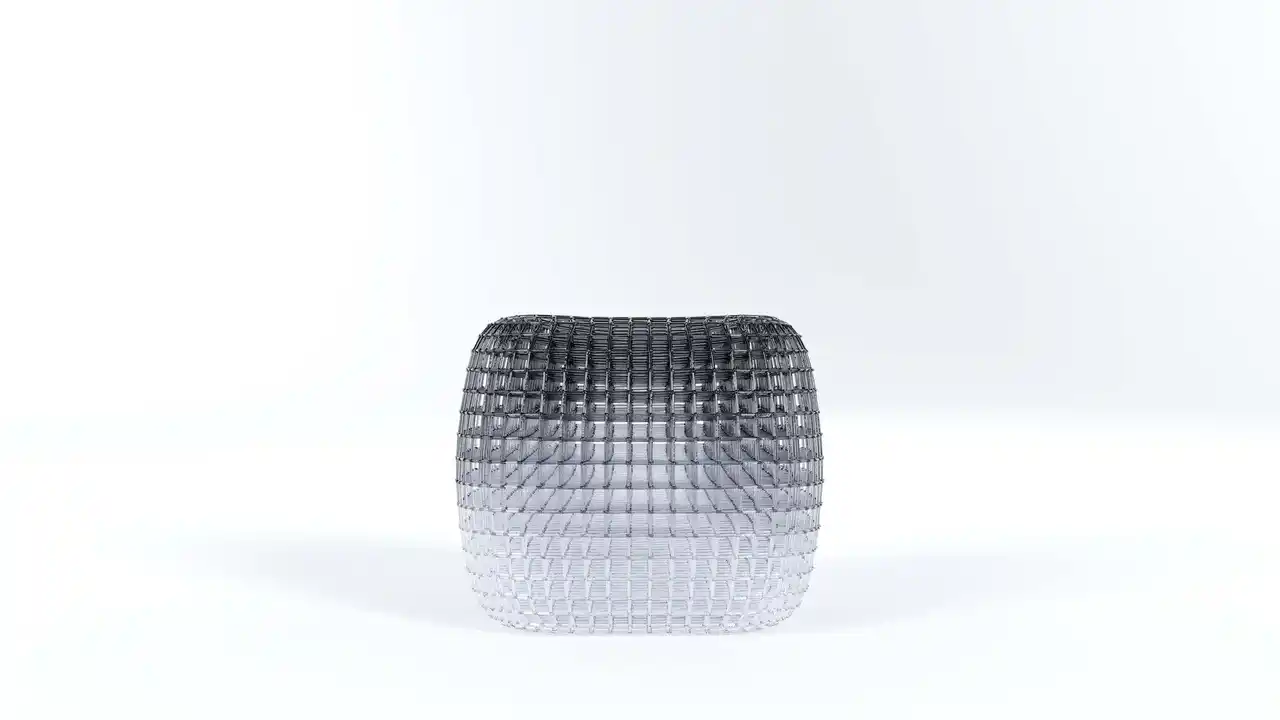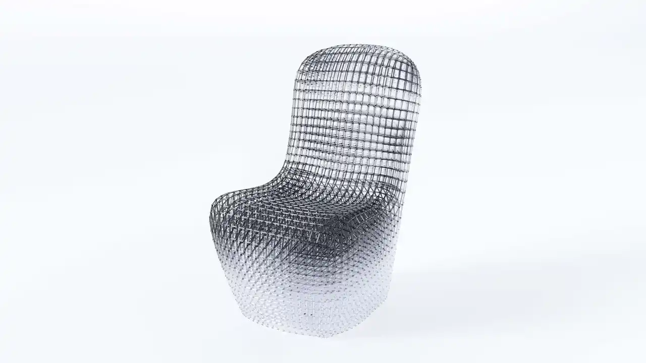 日常のなかで見過ごされがちな“存在の痕跡”を、透明な造形の中に留める試みである。椅子は本来、身体のための道具でありながら、同時に、身体が「そこにいた」ことを記録する媒体でもある。本作では、座面から立ち上がる黒い濃度が、体温や重さ、滞在時間の残像のように凝集し、下方へ向かって透明へと解けていく。そこにあるのは人物像ではなく、存在が空間へ滲み出た“影”であり、不在のなかに残る輪郭である。光を通す構造体が、見る角度によって密度と奥行きを変え、鑑賞者の身体感覚に「さっきまで誰かがいた」気配を呼び戻す。瞬間が記憶として蓄積されるように、身体の接触は痕跡として空間に編み込まれ、存在の連なりとして立ち上がる。 |