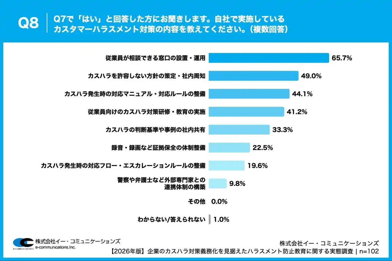 Q8. Q7で「はい」と回答した方にお聞きします。自社で実施しているカスタマーハラスメント対策の内容を教えてください。(複数回答) |