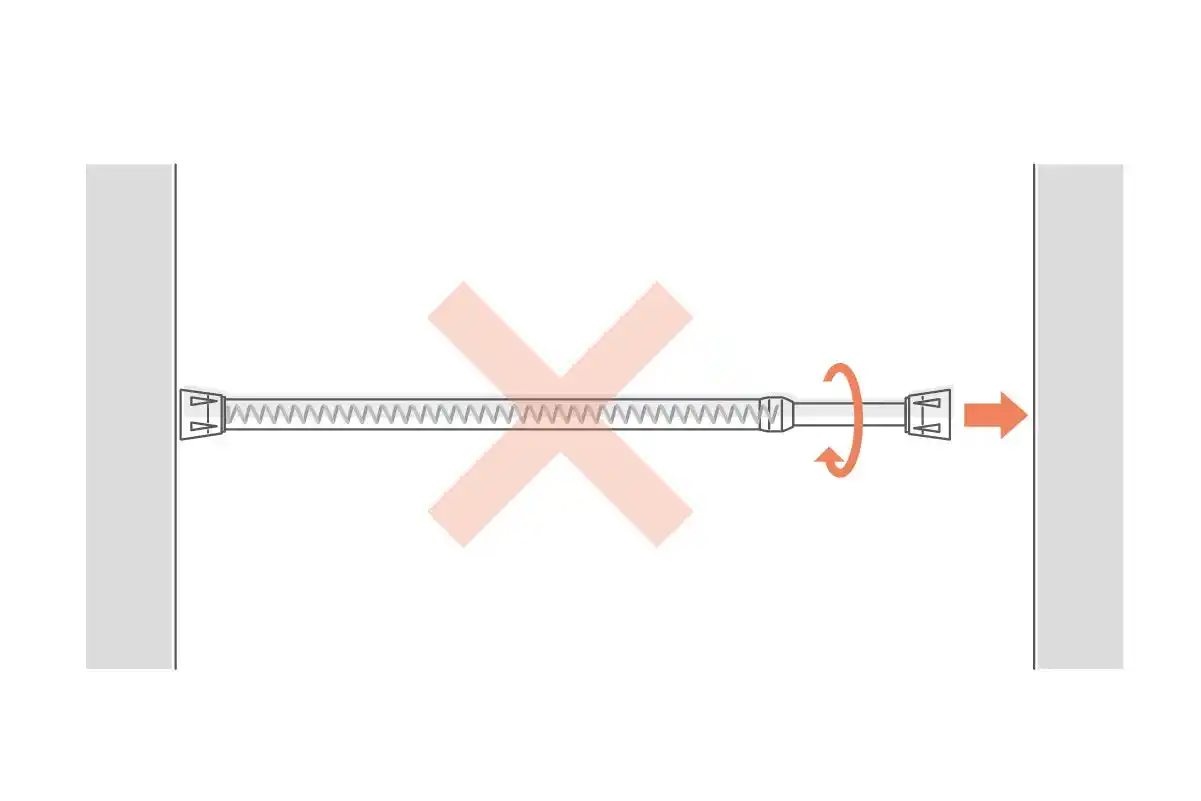 突っ張り棒を設置する際、壁の間で「くるくると回して」長さを伸ばし、そのまま固定していませんか? 実はこれ、従来のバネ式突っ張り棒においては間違った使い方です。 |