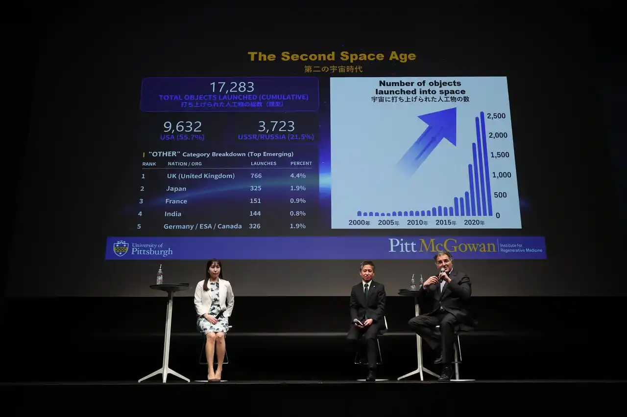 説明会では、本研究をリードする大塚製薬 先端科学研究所 所長の池田泰隆が、海外共同研究チームで協働しているAfshin Beheshti(アフシン・ベヘシュティ)氏とともに、高橋祥子氏のモデレーションのもと研究内容を紹介いたしました。 |