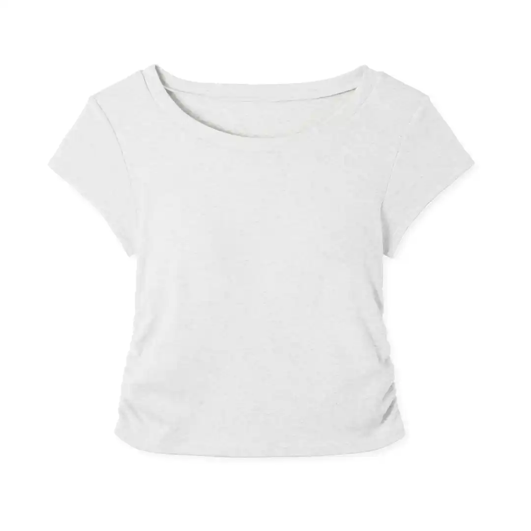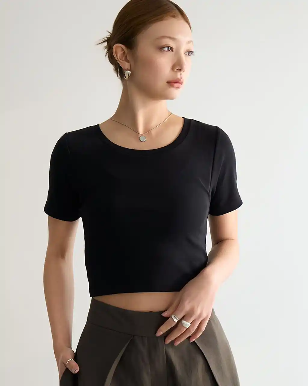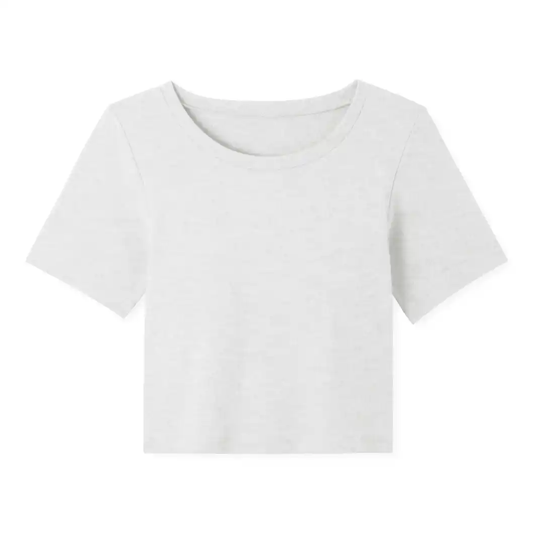 今回発売する「カップイン クロップド クルーネックT」は、トレンドのクロップド丈を採用したカップ付きTシャツです。 |
