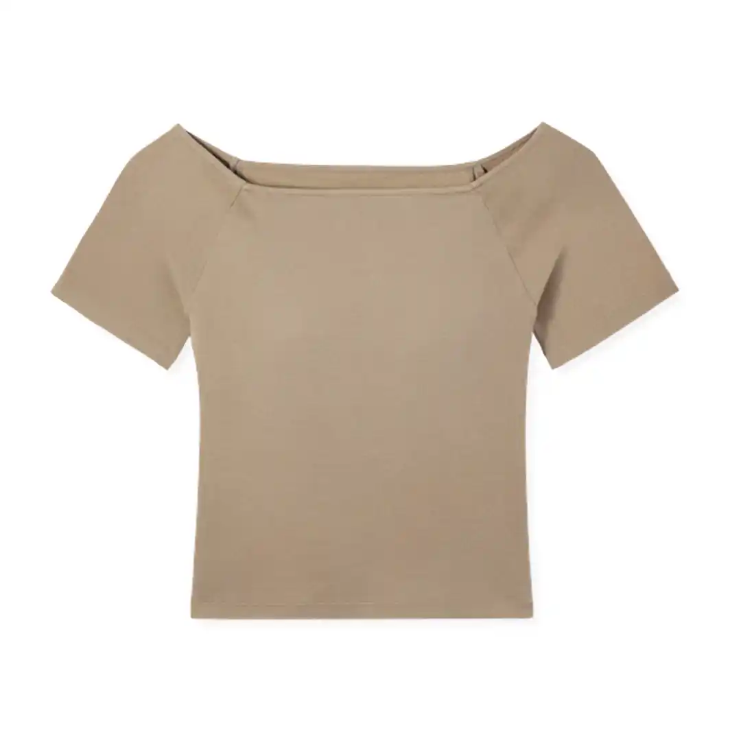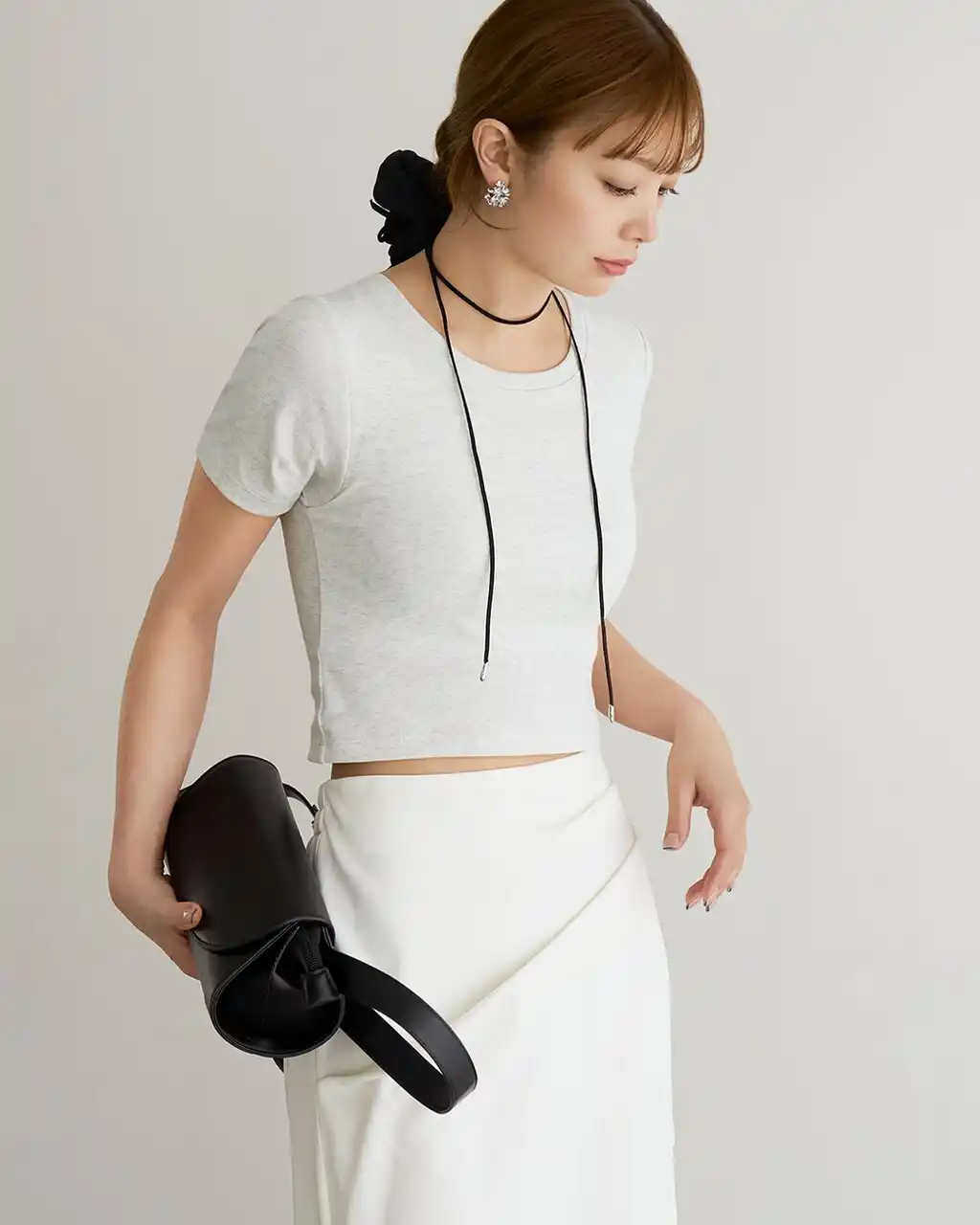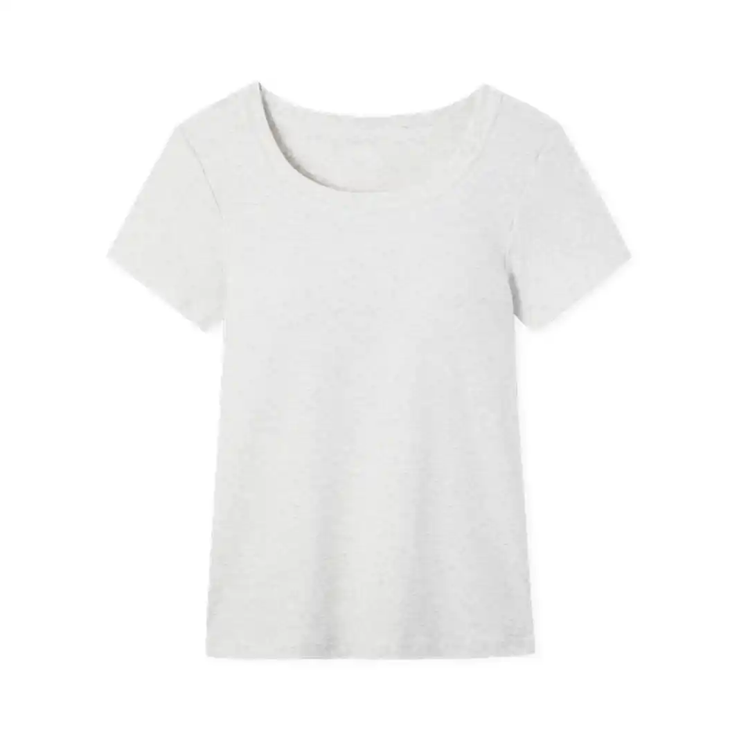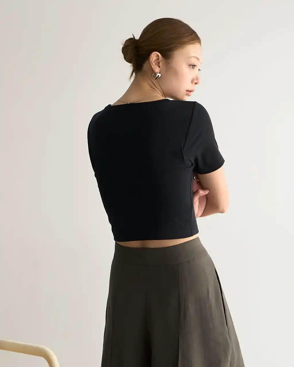 今回発売する「カップイン クロップド クルーネックT」は、トレンドのクロップド丈を採用したカップ付きTシャツです。 |