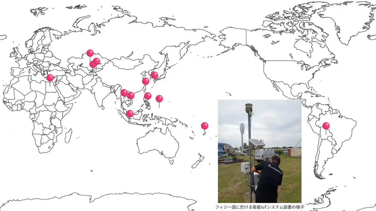 衛星IoTを利用することで、携帯電話網やインターネット網に依存することなく、通信インフラが整っていない地域の陸上や洋上に設置されたセンサデータ(気象、海洋、物流、環境等)を収集、利用することが可能です。 さらに、これらのIoTデータを衛星画像等の他の地理空間情報と統合し解析することで、状況の可視化やリスクの検出・分析、意思決定支援による広範な課題解決を一気通貫で行うことができます。 アークエッジ・スペースでは、これまでの成果を踏まえアフリカ、中央アジア、南米、太平洋島嶼国を含む多地域での国際実証、商用展開へとフェーズを進めています。 |