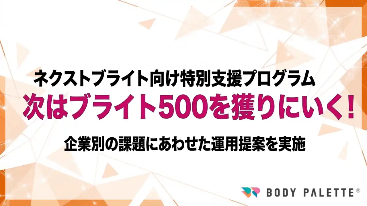 フラクタルワークアウト株式会社は、健康経営優良法人のブライト500を目指したものの届かずネクストブライトとなった企業様を対象に、「ネクストブライト応援企画:次はブライト500を取りにいくキャンペーンプログラム」を提供開始します。 |