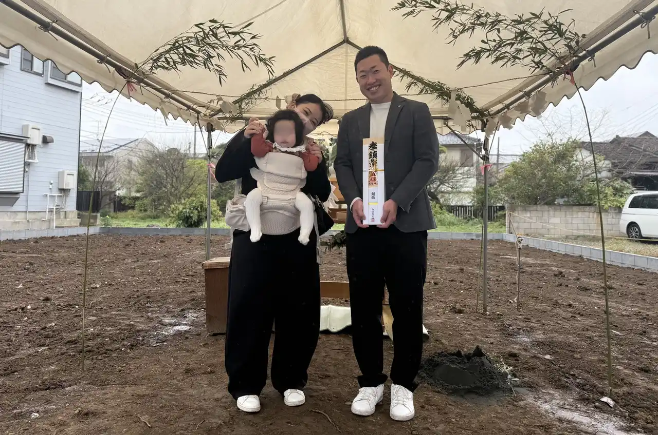 地鎮祭の様子(2026年3月31日/埼玉県越谷市)。代表夫妻と長女 |