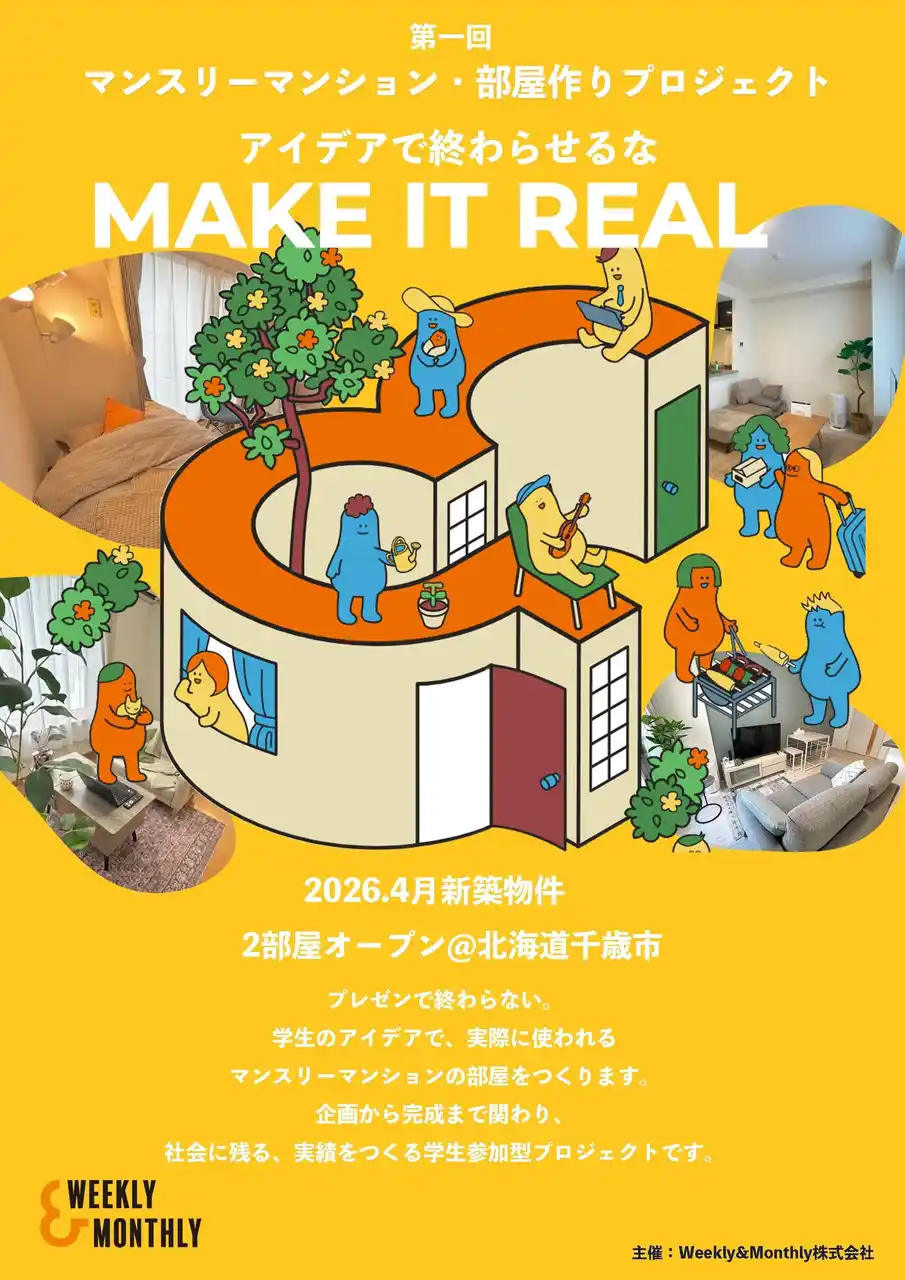 | 「アイデアを出して終わりなんて、もったいない!」 全国のマンスリーマンション予約サイト「W&M(ウィークリー&マンスリー)」を運営するWeekly&Monthly株式会社(本社:北海道札幌市北区、代表取締役:黒木健次郎)は、学生が企画した部屋を“ガチ”で実運用する「学生共創マンスリーマンション部屋作りプロジェクト」をスタートしました 。 | |||