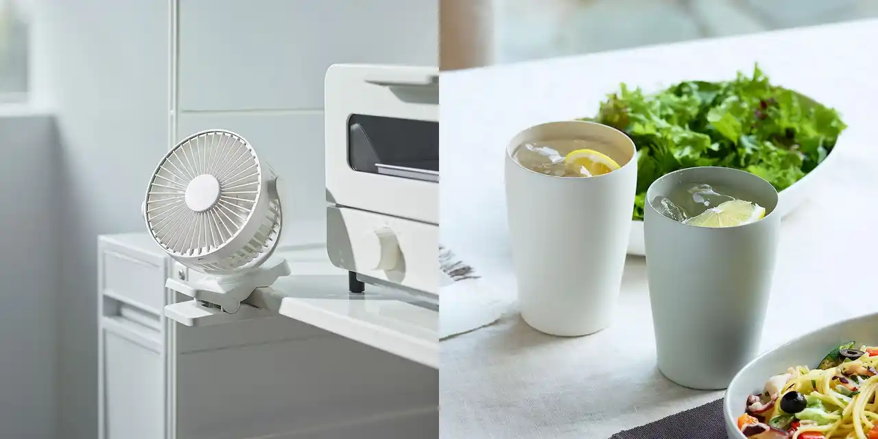 今季はこれまでに、綿100%で接触冷感を実現した寝具やクッションの「ひんやり綿」シリーズや、火を使わずに電子レンジ調理ができ、そのまま食器として夏の食卓を彩る「蓋をしたままレンジで使える 耐熱ガラス容器」を発売しました。天然素材や天然由来成分、機能性素材を使用するなどして、暑い夏を快適に乗り切る季節限定アイテムを取り揃えており、今回は、室内でも外出先でも使える小型ファンや冷たい飲み物を楽しめる保冷性能のあるタンブラーを発売します。 |