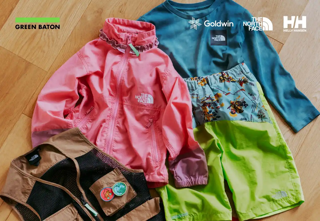 ゴールドウイン社は、スポーツアパレルメーカーとして、ものづくりを通して豊かで健やかな暮らしを生み出し、地球、社会の持続可能性に貢献することが使命と考えています。ファッションロス・ゼロを目指す同社のサステナブル・レーベル「GREEN BATON」。会場では、THE NORTH FACE、HELLY HANSEN、Goldwinの不要になった子ども服を対象に、出張買取を行います。 |