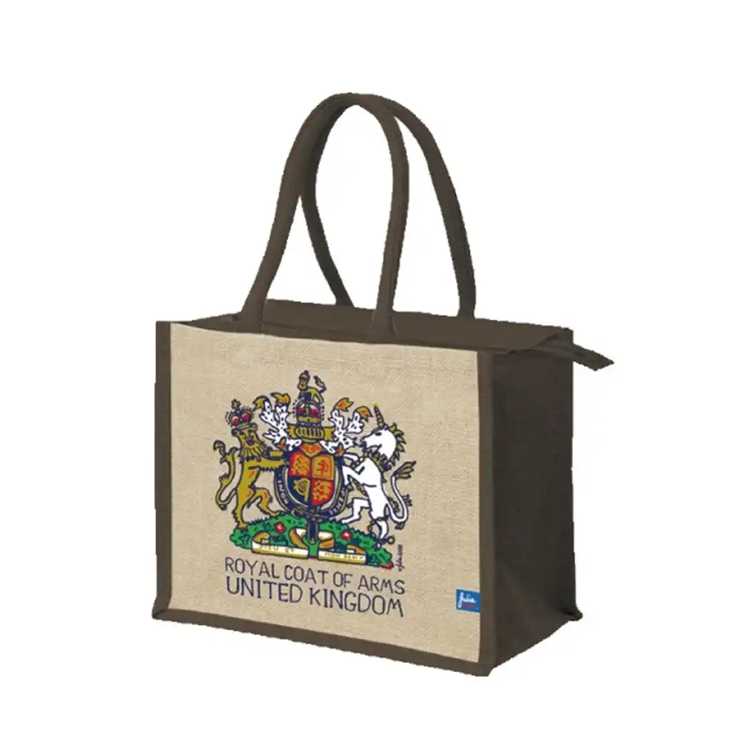■ジュリアガッシュ/ジュートバッグ 英国王室紋章柄(ラージブラウン) |