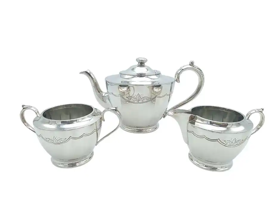 彫りの装飾が入ったビンテージのティーセット。 |