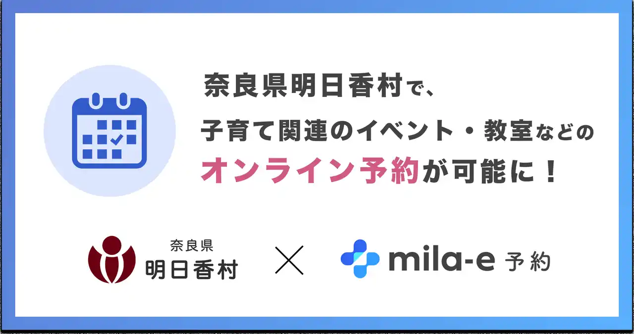 自治体向けサービスを開発する株式会社ミラボ(本社:東京都千代田区、代表取締役:谷川一也、以下「ミラボ」)は、オンライン予約サービス「mila-e(ミライー) 予約」の奈良県 明日香村への提供が決定し、2026年4月1日より運用を開始しました。