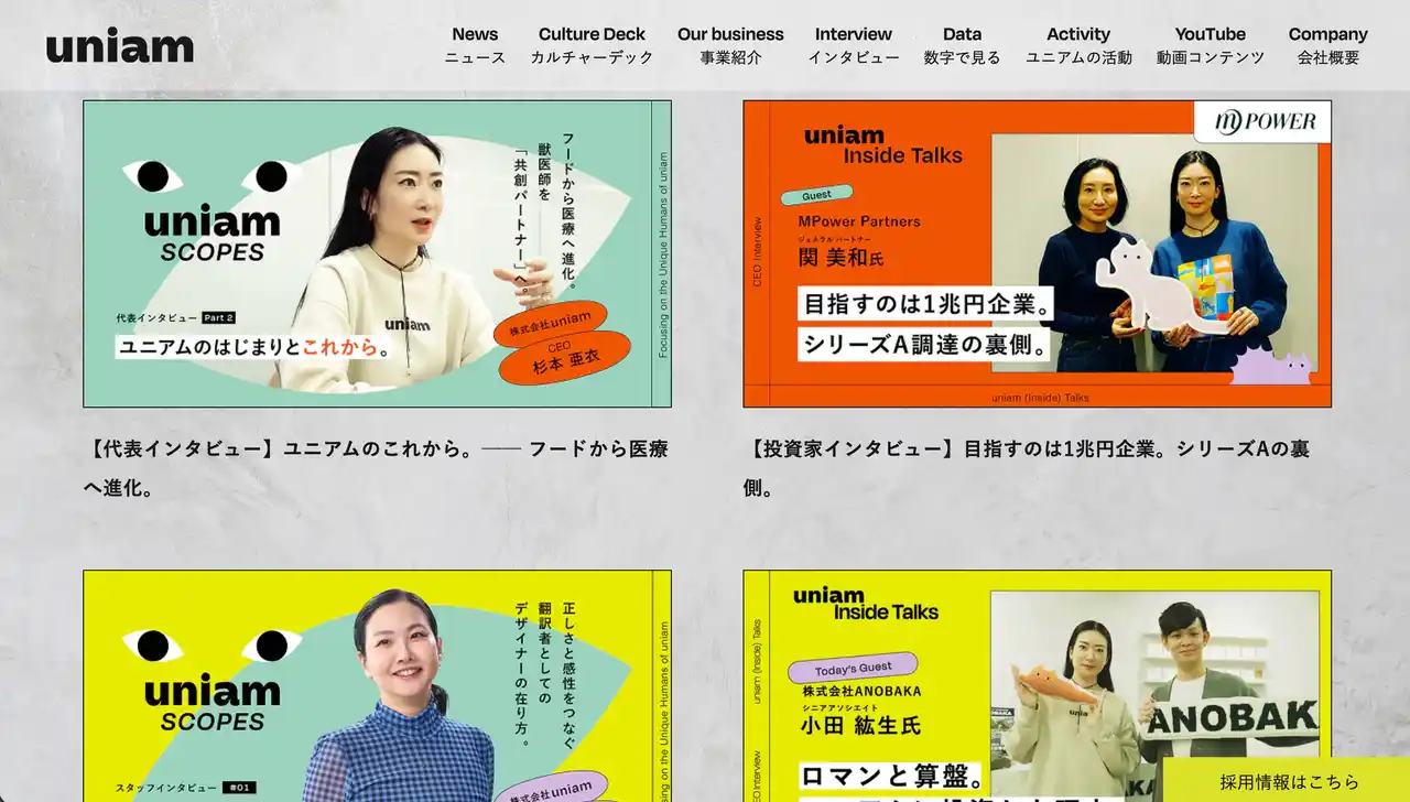 本ファイナンスに合わせて、当社の想いや実現したい未来、代表取締役CEO・杉本をはじめとしたメンバーのnote記事などをまとめた特設サイトを公開しています。ぜひご覧ください。 採用情報はこちら 採用サイト|株式会社uniam |