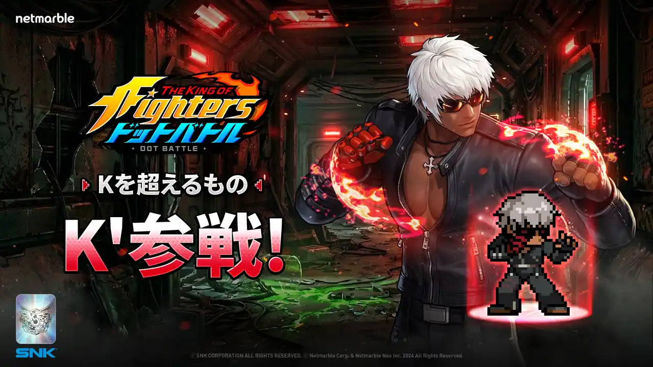 | ネットマーブルは、『THE KING OF FIGHTERS ドットバトル(ザ・キング・オブ・ファイターズ ドットバトル)』(開発:Netmarble Neo Inc)(以下、KOF ドットバトル)において、新たなレジェンドファイター「K’」を追加するゲームのアップデートを実施いたしました。 | |||