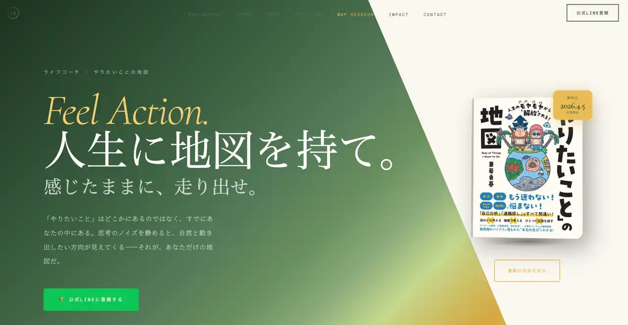 書籍『人生のモヤモヤから解放される!「やりたいこと」の地図』(SBクリエイティブ刊、2026年4月5日全国発売)の刊行を目前に控えたこのタイミングでの公開は、「地図を手渡す拠点をつくる」という著者の意志の表れです。 |