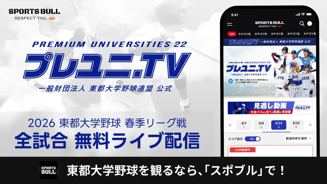 | 株式会社運動通信社(本社:東京都港区、代表取締役社長 CEO:若村 祐介、以下 運動通信社)、およびKDDI株式会社(所在地:東京都港区、代表取締役社長 CEO:松田 浩路、以下 KDDI)は、運動通信社とKDDIが共同で運営するスポーツメディア「SPORTS BULL(スポーツブル)」内の特設ページ「プレユニ.TV」(URL:https://sportsbull.jp/live/tohto/)にて、 | |||