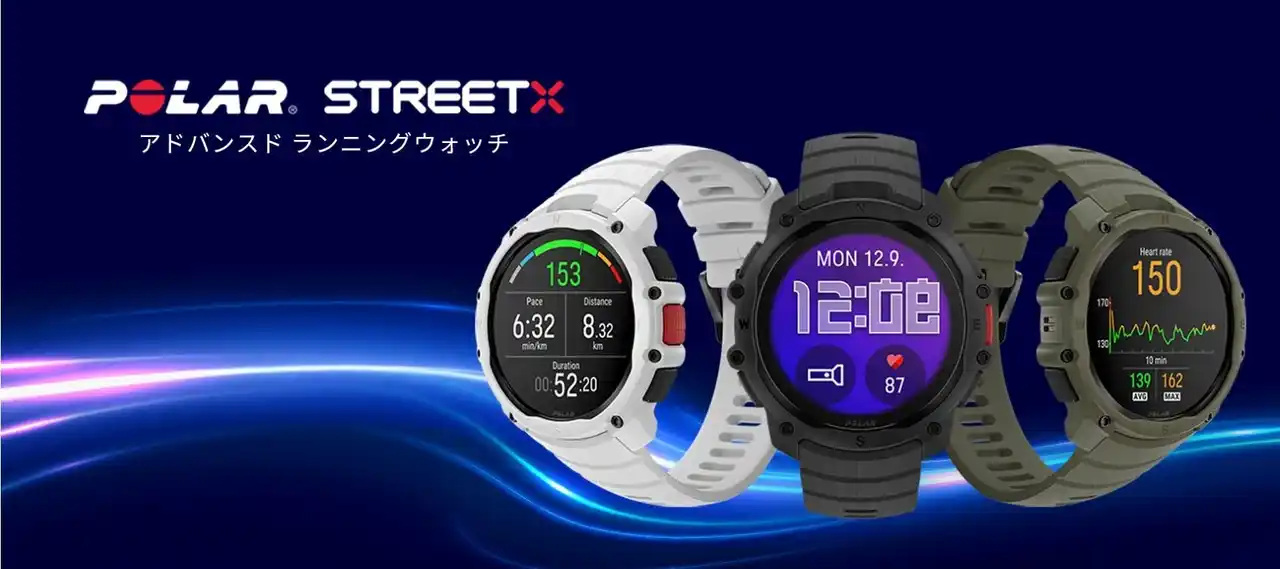 Street Xは2026年4月8日(水)よりオンラインを含む全国のポラール製品正規取扱店にて発売します。ポラール公式オンラインストアでは、本日より予約販売を開始します。希望小売価格は43,780円(税込)で、カラーはナイトブラック、スノーホワイト、フォレストグリーンの3色展開、SとM/Lの2サイズのリストバンドが同梱されています。 |