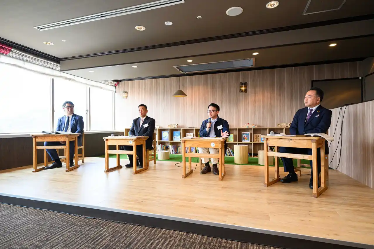 オープンに先立ち、3月28日(土)には、亀田忠彦橿原市長をはじめとする地域の関係者をお招きしたオープン記念イベントを開催しました。ラウンジのお披露目をはじめ、ローストビーフロールや奈良県産古代米と鰻の巻き寿司などフィンガーフードの試食、ローカルディスカバリープログラムの畳コースターや吉野の手漉き和紙を使ったしおりの紹介も行いました。また、会場内には世界遺産登録候補地を紹介するパネルを設置し、映像の放映も実施。さらに、「世界遺産登録に向けた地域連携」をテーマにしたパネルディスカッションも開催し、地域とともに未来への歩みを共有するひとときとなりました。 イベントの最後には、当ホテル総支配人の北口祐介がご来場の皆さまへ感謝の意を述べました。 |