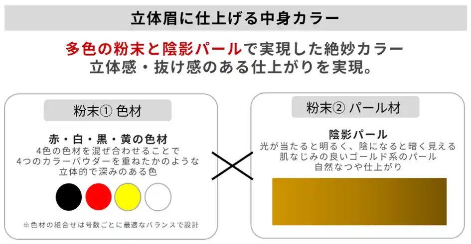さらに、スルスル描けて立体眉に導く“多色粉末&陰影パール” を配合。 |