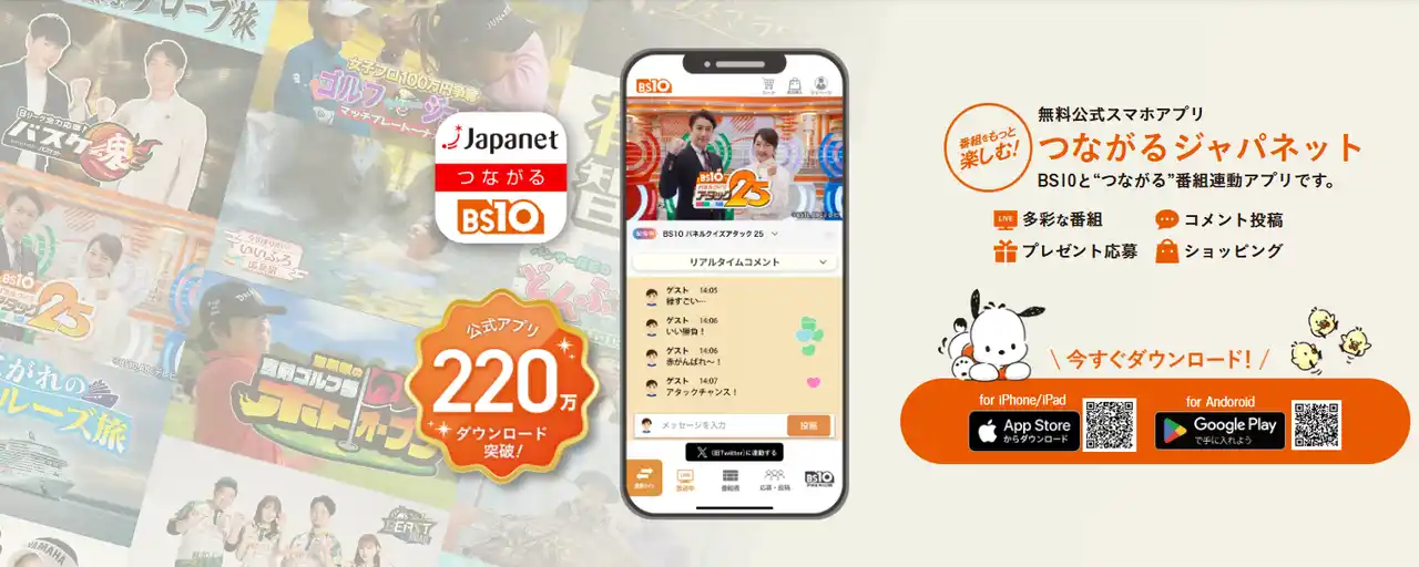 本番組をBS放送中に同時配信で視聴することができるほか、放送中にリアルタイムでほかの視聴者の方とコメント投稿を楽しんだり、番組企画への応募をしたりすることができます。 |
