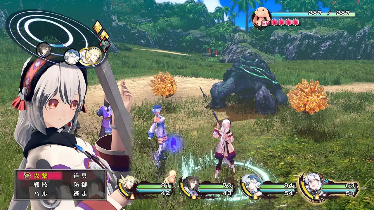 | 画面上には体力の代わりとなるシールドと、行動に必要なEPが表示されます。ハルは高い戦闘力を有しており、仮にシールドが0となり破壊されたとしても敗北にはなりません。 | |||||||||||||||||||||||