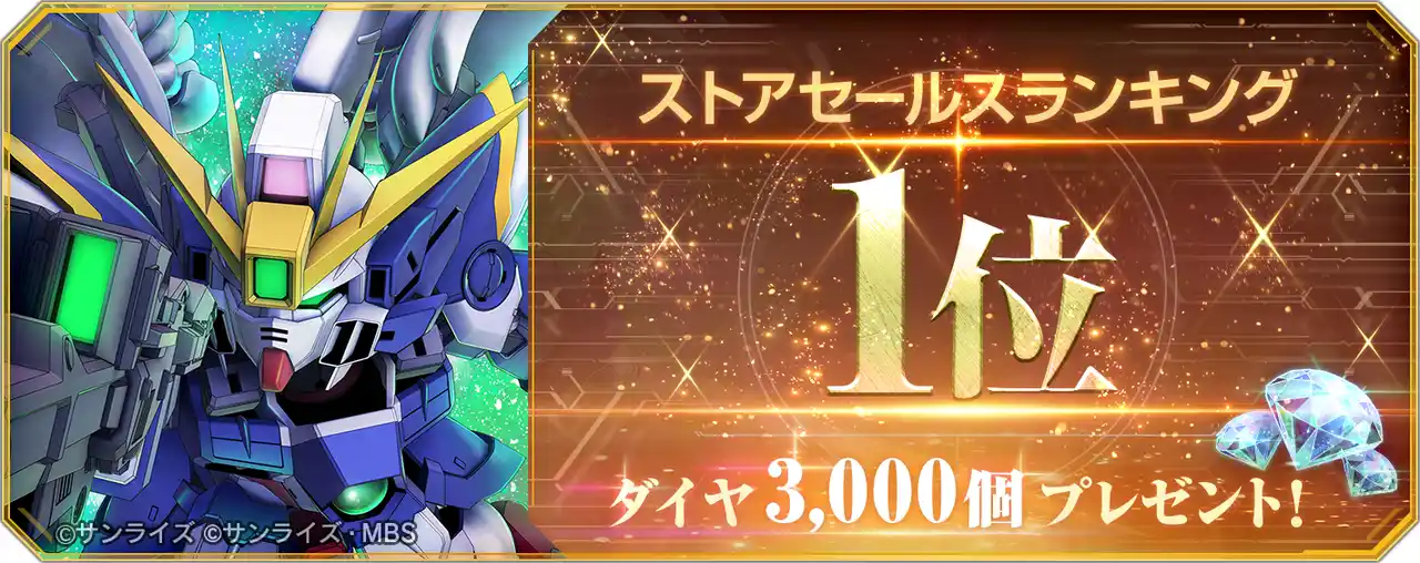 ストアセールスランキング1位を記念して、ダイヤ3,000個を全員へプレゼント! |