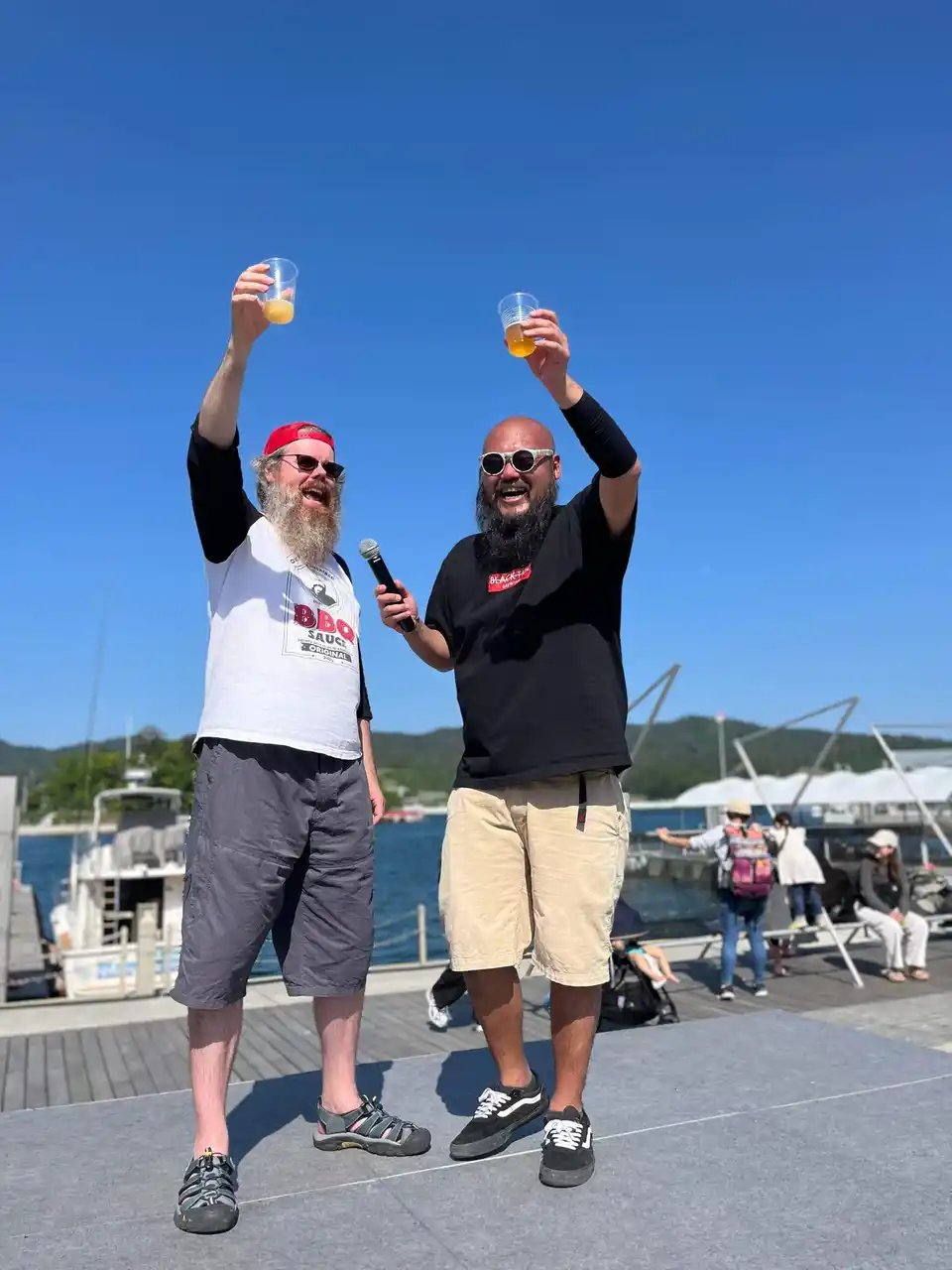気仙沼ホルモン焼き、アサリの酒蒸し、海鮮焼きそば 気仙沼ホルモンラーメン、チーズハットグ、トルネードポテト、各種レモネード・ソフトドリンク |