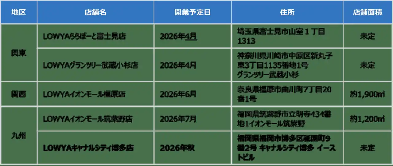 株式会社ベガコーポレーション(本社:福岡県福岡市博多区、代表取締役社長:浮城 智和、証券コード:3542、URL:https://www.vega-c.com 以下:ベガコーポレーション)が運営する、家具・インテリアブランド「LOWYA」(呼称:ロウヤ、URL:https://www.low-ya.com/ 以下:LOWYA)は、2026年秋にキャナルシティ博多 イーストビル(福岡県福岡市)に実店舗をオープンすることを発表いたします。この店舗はLOWYAの実店舗として最大の売り場面積となる予定です。 |