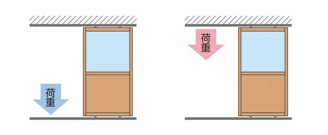 左:下荷重の製品 右:上吊りの製品 |