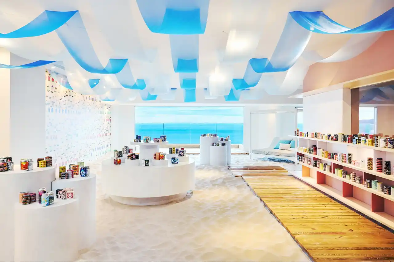 | 相模湾と熱海の街を望むソラノビーチ Books&Cafeに、缶をモチーフにした円形の棚や爽やかな色合いの装飾が新登場。棚にはツナ缶をはじめとした魚介系から、おでんなどの変わり種まで、静岡県を中心に作られたビールに合う缶詰100種が並びます。 開放感あふれる空間で、缶詰を自由に手に取りながら、お気に入りを探すことができます。 | |||||||||