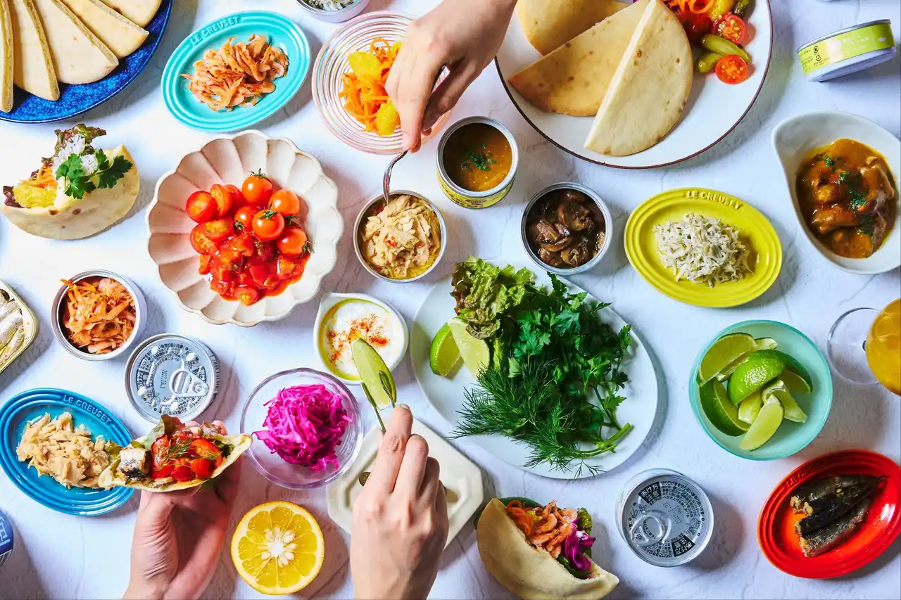 | 缶詰の新たな美味しさを発見できるオリジナルプレートを提供します。まずはツナや桜エビ、しらすなど5種類の中からベースとなる缶詰を選択。そこに合わせるのは、柑橘やハーブなどの具材と、わさびを使用した爽やかなマヨネーズソースをはじめとする3種類のソースです。自分好みに組み合わせ、具材やソースとの意外な相性を発見することで、身近な缶詰の新たな一面を知る体験です。 | |||||||||
