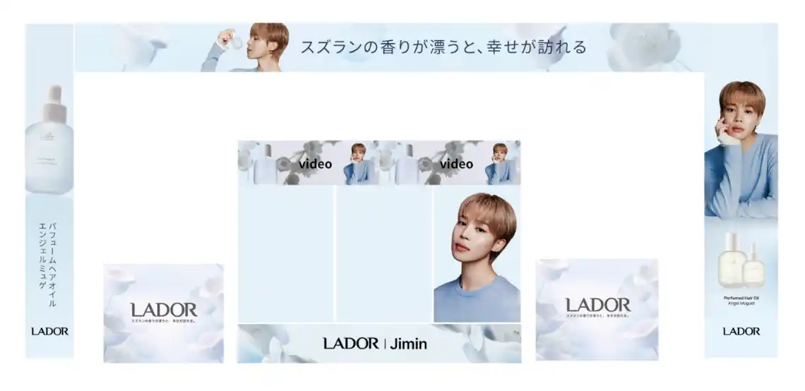 ・実施期間:2026年4月2日(木)~4月13日(月) ・展開店舗:ドラッグストアamano 名駅中央店 ・所在地:愛知県名古屋市(名古屋駅直結) ・実施内容:BTS Jiminさん店舗内ビジュアルラッピング、LADOR商品の販売 |