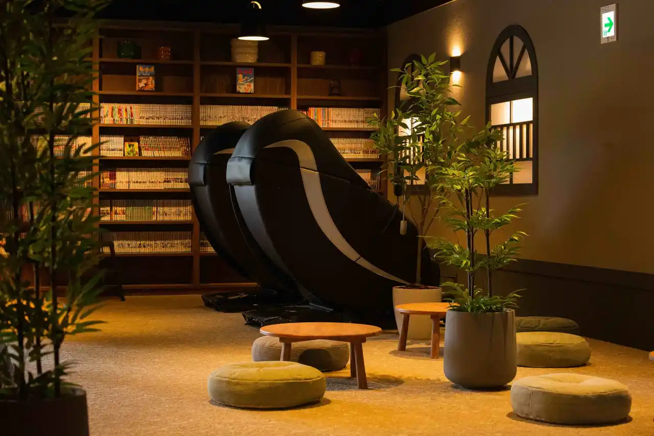 3,000冊の漫画や雑誌、無料で利用できるマッサージ器2台を備えています。 |