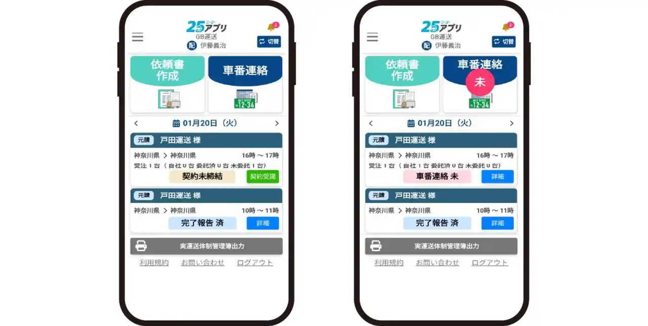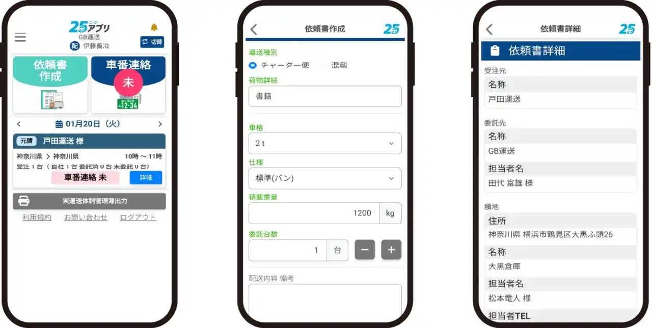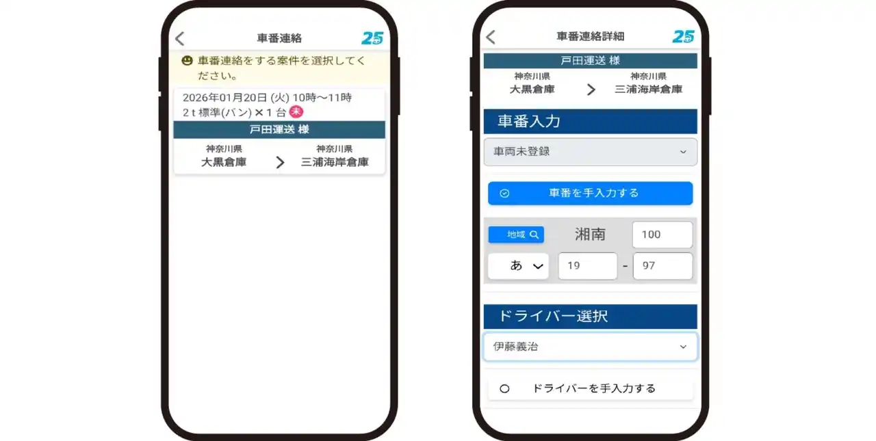 運送依頼×車番連絡×完了報告をらくらく連携する「25アプリ」 現場で実際に起きている課題をもとに、業務効率化と情報連携の具体的な改善方法を解説します。 |