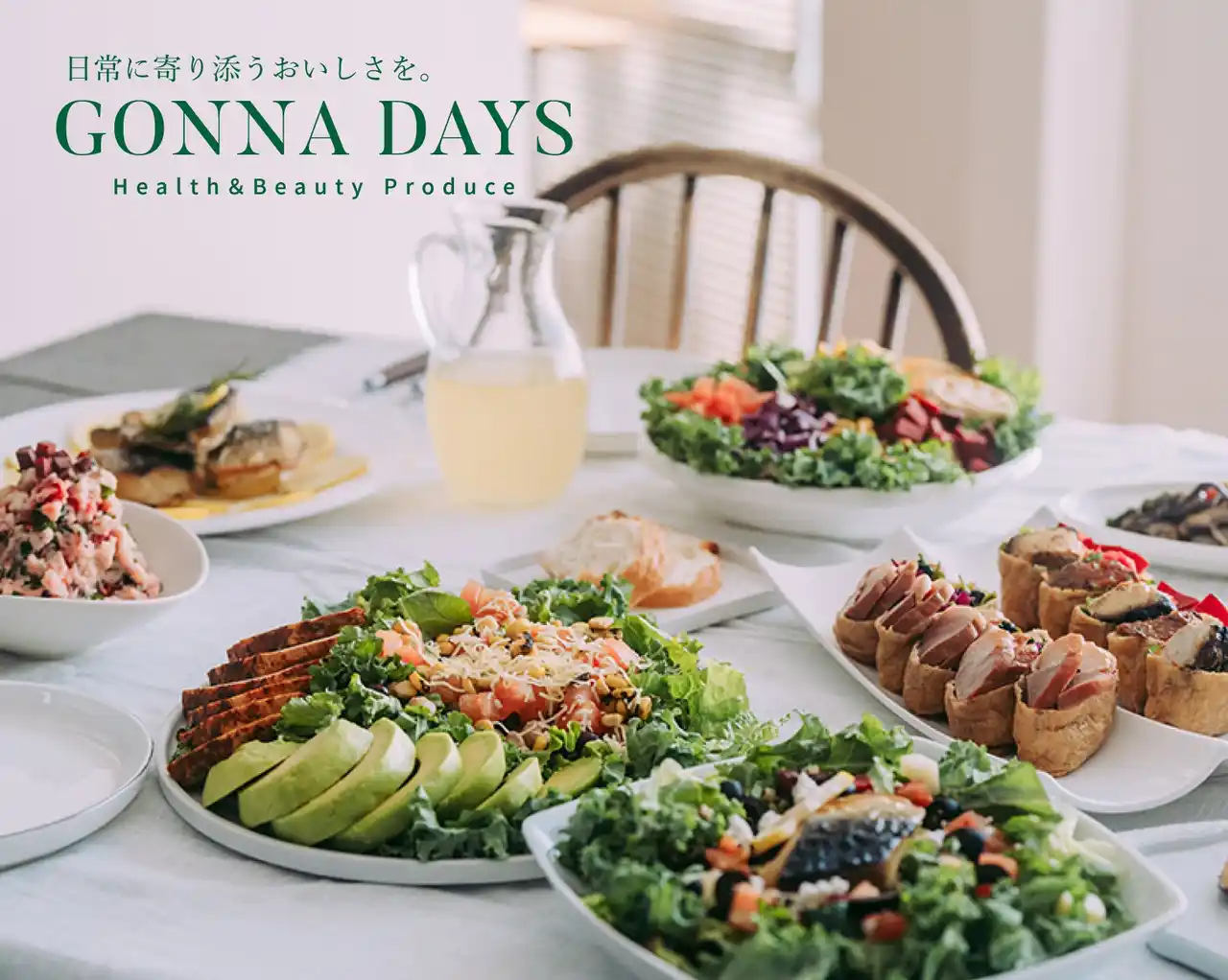 GONNA DAYS は、“より豊かで彩りのある、あなたらしいインナービューティーを”をコンセプトに、自社農園の西洋野菜を中心に使用したサラダやデリカテッセンを展開する食ブランドです。 |