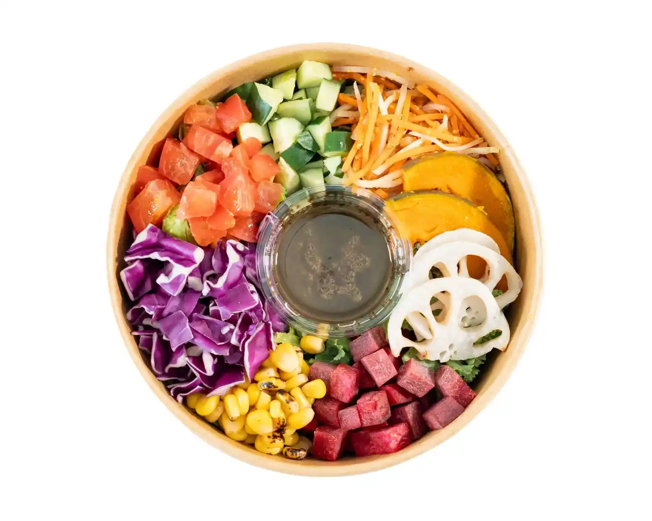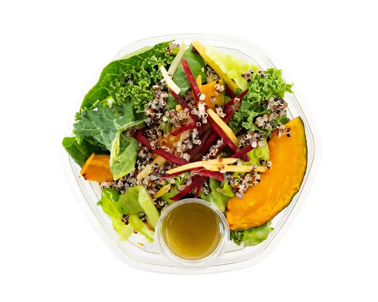 栄養豊富なケールと、スーパーフードとして知られるプチプチ食感のキヌアをたっぷり使ったベジタブルサラダ。ビーツやカラフルにんじんを加え、軽やかで飽きのこないおいしさに仕立てました。バジルを加えた爽やかなシトラスビネガードレッシングが野菜の味わいを引き立て、食べるほどに爽やかな香りが口の中で広がります。 |